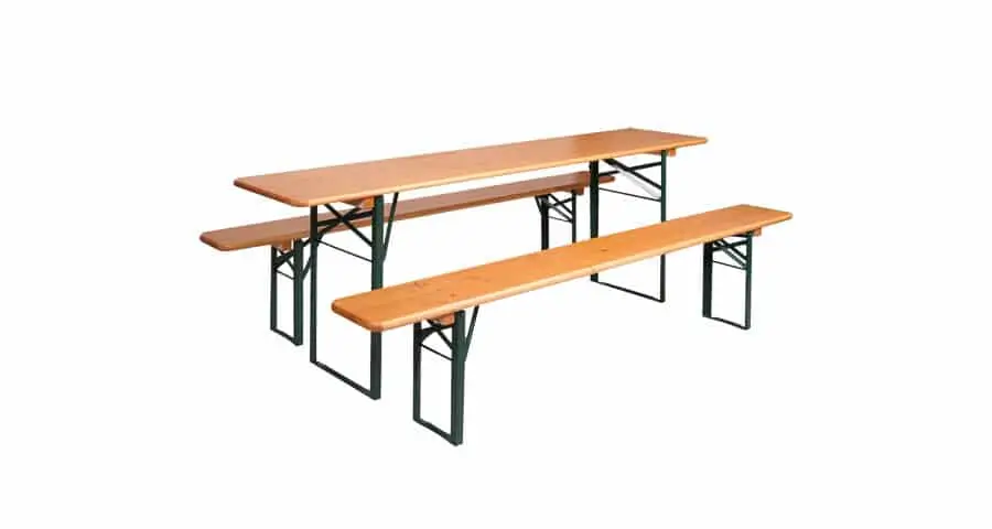 1x Festzelttisch 50cm breit, 2x Festzeltbänke