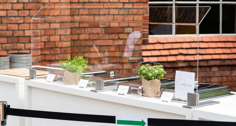 Safety first. Sichern Sie Ihre Buffet und Counter mit unseren Hygiene-Schutzwänden.