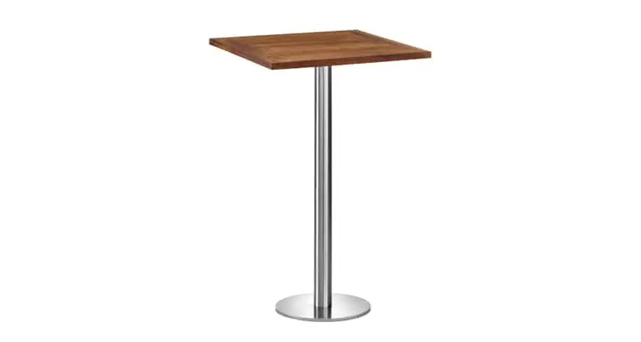 Gestell: Edelstahlfuß, Tischplatte: Teakholz, geölt
