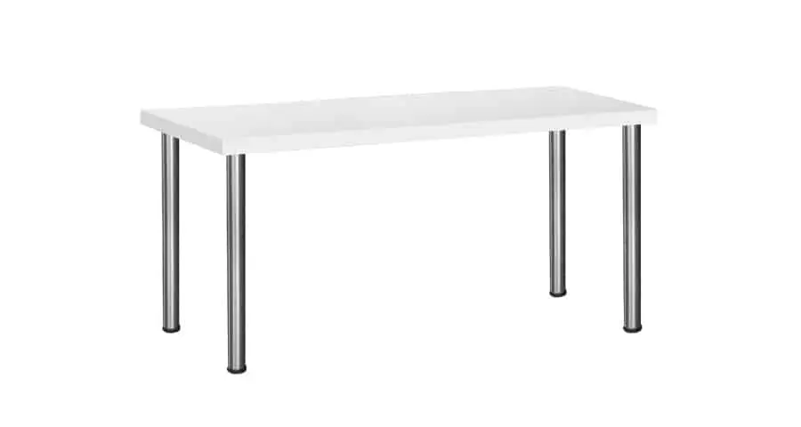 Gestell: vier Edelstahlfüße, Schnellverschluß, Tischplatte: beschichtetes Holz